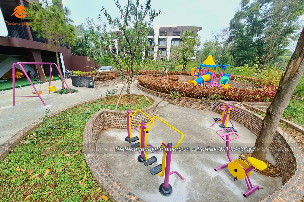 📸 Dưới đây là loạt hình ảnh thực tế tại hiện trường lắp đặt ở khu dưỡng lão – nghỉ dưỡng Sóc Sơn. Những góc chụp này ghi lại trọn vẹn không gian xanh mát, cách bố trí thiết bị hài hòa, và từng chi tiết thi công được hoàn thiện tỉ mỉ – để bạn cảm nhận rõ hơn chất lượng sản phẩm và sự chỉn chu trong mỗi công trình của Thể Thao Quang Minh.