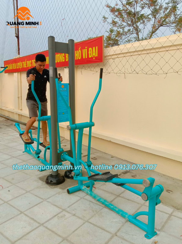 Thiết bị thể thao trụ đôi ngoài trời của Quang Minh được chế tạo từ thép mạ kẽm nhúng nóng dày, chịu lực tốt, mang lại sự ổn định trong suốt quá trình vận động. Chuyển động của thiết bị được thiết kế êm mượt, phù hợp cho nhiều nhóm tuổi và dễ dàng tiếp cận. Các thiết bị như xoay eo đôi, đạp xe đôi, tập kéo tay đôi hay xà kép,… đều được tích hợp để người dân có thể rèn luyện toàn thân một cách hiệu quả. Sự đa dạng này giúp khu vui chơi trở nên hữu ích và thu hút hơn với người tập.