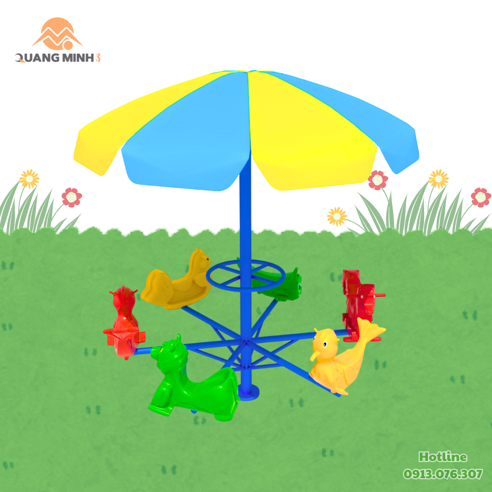 Đặc điểm: Thiết kế 6 con thú ngộ nghĩnh, quay tròn an toàn, màu sắc sinh động, chất liệu bền chắc, phù hợp sử dụng ngoài trời.